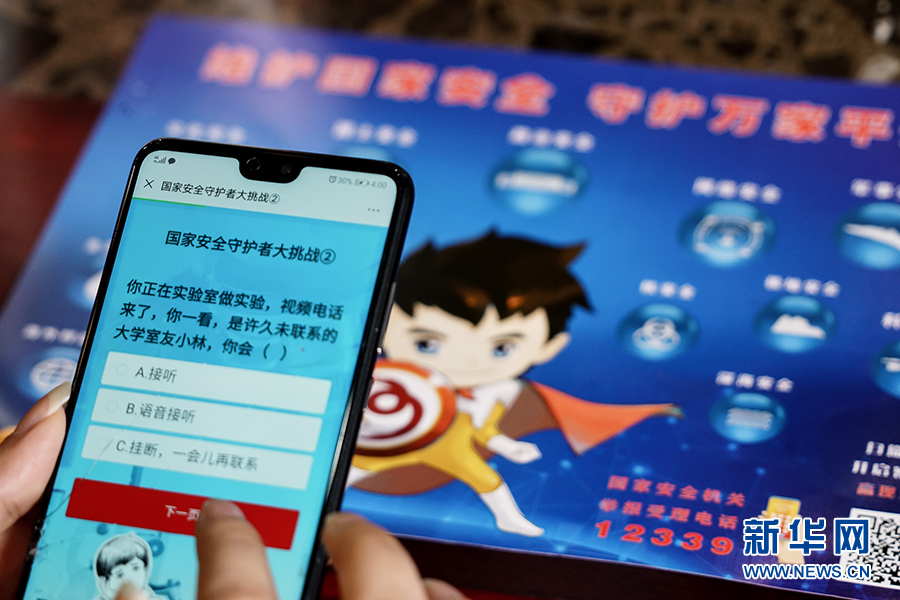 這一游戲程序把“國家安全進(jìn)網(wǎng)絡(luò)”和“國家安全進(jìn)課堂”相結(jié)合,測試內(nèi)容集知識性和趣味性于一體,把國家安全大政方針與人民群眾生產(chǎn)生活可能遇見的風(fēng)險情況有機(jī)結(jié)合,以號召廣大人民群眾積極參與到國家安全中來,把國家安全群眾性教育落實落地。新華網(wǎng) 韓夢霖 攝