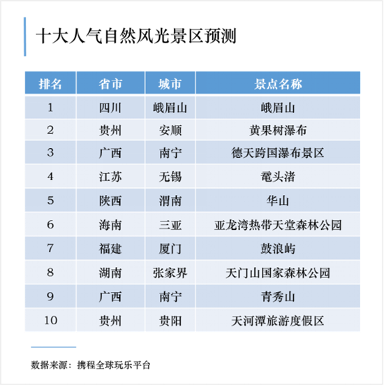 近日,攜程綜合各景區(qū)目前的瀏覽量與門票預(yù)訂量,發(fā)布了“預(yù)約景區(qū)人氣預(yù)測(cè)排行榜”,人氣最高的十大自然風(fēng)光類景區(qū)中華山赫然其中。