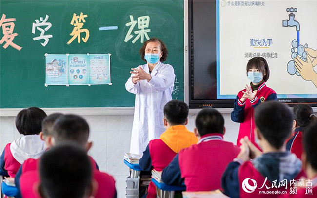 內(nèi)蒙古呼和浩特市第十二中學(xué)校醫(yī)為學(xué)生講解疫情防護(hù)知識(shí)和衛(wèi)生常識(shí),上好開學(xué)第一課。