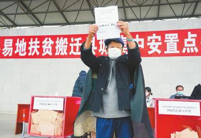 走上抽簽臺、抽取房號、按下手印……簡單幾個步驟后,昭覺縣77歲的特殊困難戶色七古博,拿到了易地扶貧搬遷縣城集中安置點的新房房號。