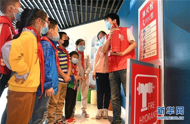 5月10日,合肥市淝南社區(qū)的志愿者向轄區(qū)兒童講解滅火設備的使用方法。新華社記者 劉軍喜 攝