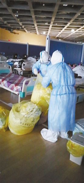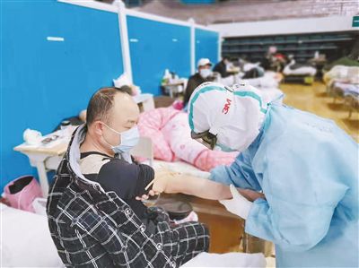 對于護理醫(yī)療隊的隊員們來說,在洪山體育館武昌方艙醫(yī)院的每一天,都是那么緊張。護理人員需快速對新入院的患者實施入院流程管理,觀察病情、監(jiān)測病人生命體征,及時將不適合入院的患者分診出轉(zhuǎn)至定點醫(yī)院;在為患者做好血氧監(jiān)測、體溫監(jiān)測等專科護理的同時,還包攬了喂飯、喂藥、翻身、擦洗、換衣、大小便管理等各種貼身護理工作。這些看起來簡單的工作,卻因為要在防護服、口罩、護目鏡等防護裝備的層層包裹下進行,變得異常吃力。最忙的時候,3個護士要同時護理82名患者,但隊員們憑著自身過硬的護理經(jīng)驗,攻克了一個又一個難關(guān)。