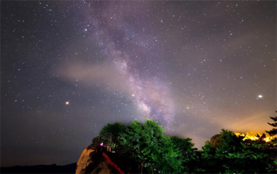 夜深時,繁星璀璨,浪漫星空的樂章開始奏響。在城市里,你有多久沒有看到過無垠的星空?華山之巔,一輪朗月靜靜懸在漆黑的夜幕之上。在這里,星空依然閃耀,月色依然純潔溫暖。拋開一切疲倦,用最無憂的心聆聽星空獨(dú)特的音韻,享受大自然最真切卻最奢侈的美,留下在華山和天空擁抱的味道。