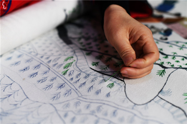 35歲的貧困戶張小容,因?yàn)檎煞蛞馔馐軅荒軇趧?dòng),一個(gè)人扛起了家庭的重?fù)?dān)。經(jīng)過培訓(xùn),現(xiàn)在她在苗繡工藝品公司上班,下班回家后還要加班繡香囊,每月有近3000元的收入。70多歲的婆婆有一次專門來公司看她,回家后再也不讓兒媳婦洗碗,怕傷到兒媳婦做苗繡的雙手。張小容說,能在照顧家人的同時(shí)增加收入,給了她堅(jiān)持的希望。