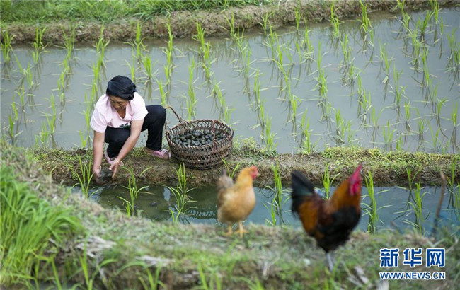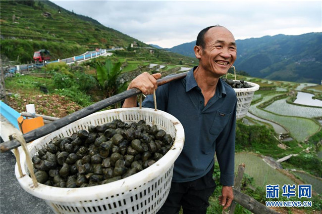在田螺養(yǎng)殖過程中,采取“公司+合作社+農(nóng)戶”的模式,政府統(tǒng)一向龍頭公司采購種螺交給合作社,合作社根據(jù)貧困戶水田規(guī)模和意愿發(fā)放種螺,同時公司技術人員入村開展養(yǎng)殖技術培訓,田螺收獲時再由合作社對接種螺公司統(tǒng)一上門按保底價回收,解除了貧困戶養(yǎng)殖和銷售的后顧之憂,進一步拓寬山區(qū)群眾脫貧增收渠道。 新華社記者 楊文斌 攝