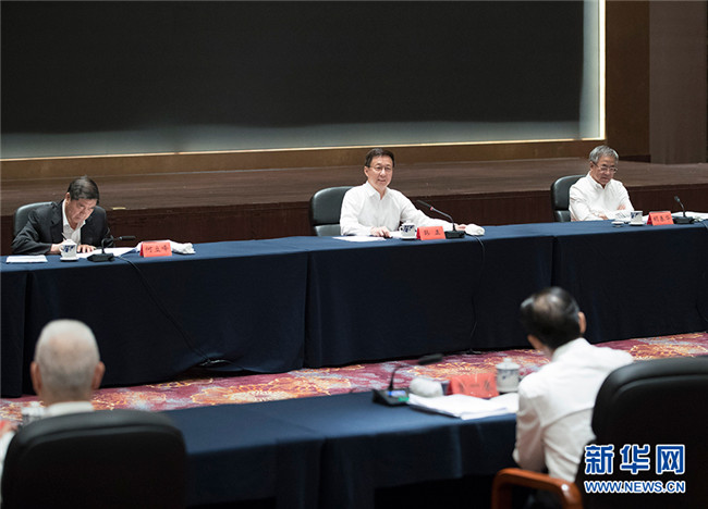 5月31日,中共中央政治局常委、國務院副總理、推進海南全面深化改革開放領導小組組長韓正在??谥鞒终匍_推進海南全面深化改革開放領導小組全體會議并講話。 新華社記者 王曄 攝