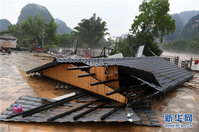 這是廣西陽朔縣遇龍河邊被洪水損毀的旅游設(shè)施(6月8日攝)。新華社記者 陸波岸 攝