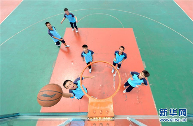 6月22日,河北省邯鄲市邯山區(qū)第一中學(xué)的高三學(xué)生在操場上打籃球。 新華社記者 王曉 攝
