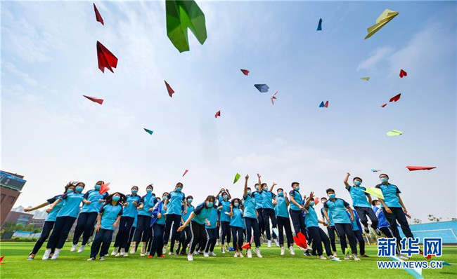 6月22日,河北省邯鄲市邯山區(qū)第一中學(xué)的高三學(xué)生將寫有自己夢想的紙飛機拋向空中。新華社記者 王曉 攝