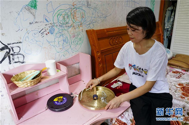 7月1日,一次巡查監(jiān)測結束后,侯芳將鑼、哨和卷尺按照自己的習慣整齊地放置在床頭的柜子上。 新華社記者 劉潺 攝