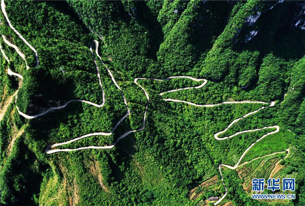 7月3日拍攝的下莊村(無(wú)人機(jī)照片)。地處秦巴山區(qū)腹地的重慶市巫山縣竹賢鄉(xiāng)下莊村被稱作“天坑村”。多年來(lái),全村人憑借“不等不靠,幸福要自己造”的精神,走出了自己的一條幸福路。曾經(jīng),四面絕壁猶如一圈難以跨越的高墻,將下莊人緊緊困在里面。閉塞的交通束縛了人們掙脫貧困和封閉的雙手,阻擋著全村通向文明和富裕的腳步。不甘心“坐井觀天”的下莊人,用生命挑戰(zhàn)懸崖,村民拿著鐵釬和鐵錘,在懸崖上鑿出一條“通天路”,徹底改變了村莊的命運(yùn)。當(dāng)?shù)卣群髮?duì)下莊村的道路進(jìn)行了加寬、硬化加固,并加裝了護(hù)欄。如今,從下莊出發(fā)到縣城的時(shí)間縮短到一個(gè)半小時(shí)左右。通路后,村里的面貌很快發(fā)生了變化。2015年,下莊村完成整村脫貧。如今,下莊村建立了果蔬種植合作社,巫山縣在這里建立了下莊精神陳列館,建成了風(fēng)貌統(tǒng)一的鄉(xiāng)村民宿,幫助下莊村發(fā)展生態(tài)文旅產(chǎn)業(yè)。曾經(jīng)的“天坑村”靠著自強(qiáng)不息的精神,道路越走越寬。新華社記者王全超攝