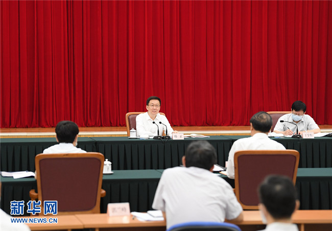 7月14日,中共中央政治局常委、國務(wù)院副總理韓正在國家發(fā)展改革委召開座談會。新華社記者 申宏 攝