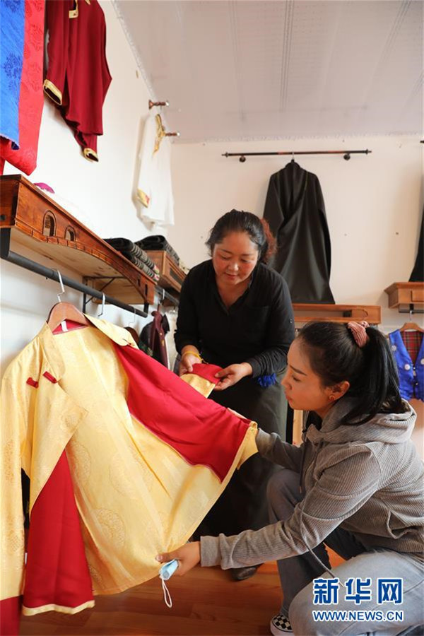 7月23日,在甘肅省甘南藏族自治州夏河縣??奇?zhèn)崗岔村的扶貧車間內(nèi),卓瑪吉(右)和扶貧車間負(fù)責(zé)人研究成衣款式。崗岔村是甘肅省甘南藏族自治州夏河縣??奇?zhèn)的一個(gè)牧業(yè)村,平均海拔3000米以上。2018年,在夏河縣文明辦工作的卓瑪吉開始擔(dān)任駐村幫扶工作隊(duì)隊(duì)長(zhǎng),每年都有200多天待在草原上。兩年來(lái),卓瑪吉帶領(lǐng)大家開辦扶貧車間,發(fā)展特色產(chǎn)業(yè),聯(lián)系勞務(wù)輸出。為了讓村民更全面地了解精準(zhǔn)扶貧政策,卓瑪吉登門宣講政策。為了提高村容村貌,卓瑪吉發(fā)動(dòng)大家開展廁所革命和庭院環(huán)境評(píng)比,積極響應(yīng)甘南藏族自治州“全域無(wú)垃圾”創(chuàng)建行動(dòng)。她還從縣城請(qǐng)來(lái)醫(yī)生,為村民舉辦健康講座,在全村婦女中開展“兩癌篩查”。如今,崗岔村變成了干凈、整齊、富裕、美麗的生態(tài)文明村,提前實(shí)現(xiàn)了整村脫貧。談起心愿,卓瑪吉說(shuō):“要讓草原和草原上的人都變得更美。”新華社發(fā)(杜哲宇攝)