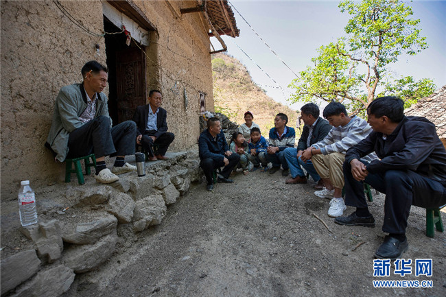 搬遷當(dāng)天,掛鉤幫扶干部和鄉(xiāng)鄰們上門(mén)道賀,掛鉤幫扶干部希望李本艷的父母——李守朝和陶大煥,能聽(tīng)從安排、努力工作、勤勞致富,給孩子一個(gè)幸福的未來(lái)(攝于4月2日)。新華網(wǎng)發(fā)(鮑禹 攝)