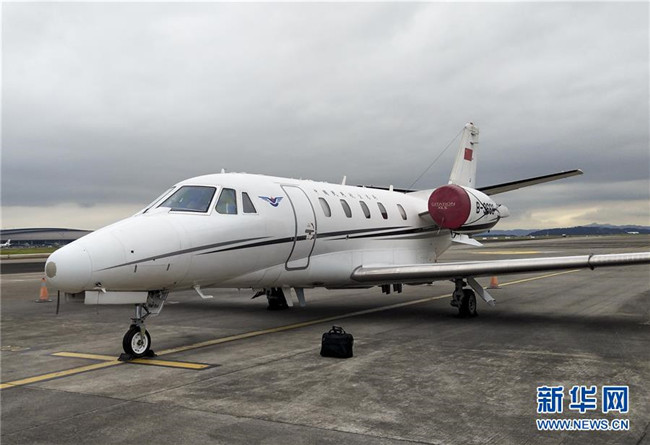 8月13日在重慶江北國際機場拍攝的仙女山機場校飛飛機(手機拍攝)。新華社發(fā)(重慶機場集團供圖)