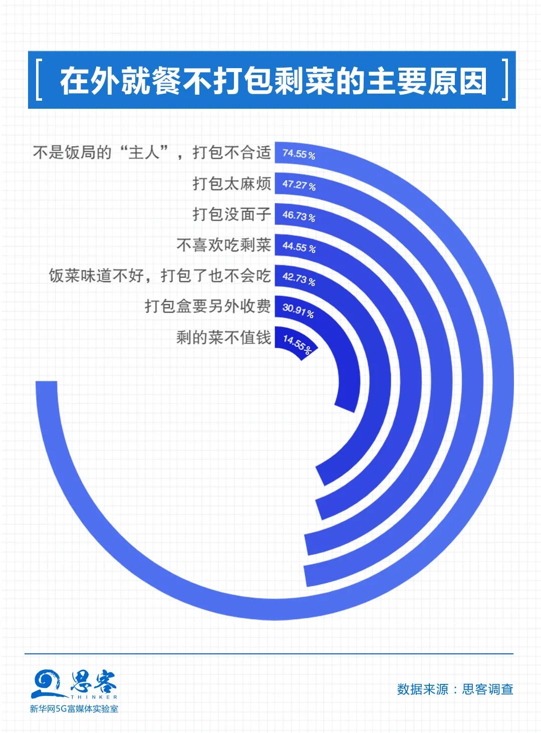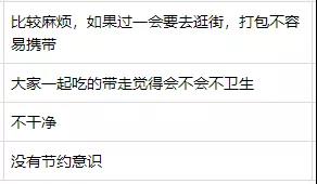 打包不合適、太麻煩、沒(méi)面子,這些是受訪者認(rèn)為在外就餐不愿打包剩菜的主要原因。“我不是宴會(huì)的主辦者,我打包不合適,好像我占便宜似的”“同桌的人一起夾過(guò)的菜,打包不衛(wèi)生”“穿著西裝打著領(lǐng)帶,手上拿著打包盒很奇怪”“中午食堂的剩菜又沒(méi)有打包盒裝,下午又沒(méi)地方放,沒(méi)人會(huì)打包帶走”,這樣的受訪者留言在后臺(tái)還有不少。