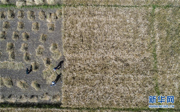 8月29日,農(nóng)民在日喀則市江孜縣的青稞田里忙收割(無人機(jī)照片)。日喀則是西藏重要的商品糧基地,被譽(yù)為“西藏糧倉”。當(dāng)前正值青稞收獲季節(jié),當(dāng)?shù)剞r(nóng)民抓緊收割,農(nóng)田里一片繁忙景象。新華社記者孫非攝