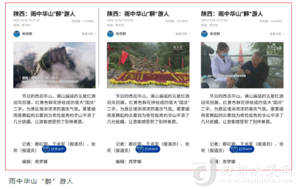 度節(jié)期間,通過央視cctv2【天下財經(jīng)】、cctv4、cctv13【新聞30分】、cctv13【新聞直播間】、央視網(wǎng)【國慶假期·出游】、央視網(wǎng)學(xué)習(xí)強(qiáng)國、央視新聞客戶端、新華社等國家級媒體對景區(qū)度節(jié)工作、游覽秩序、特色服務(wù)等方面進(jìn)行轟炸式報道;聯(lián)合陜西日報、陜西電視臺、渭南日報、渭南電視臺、三秦都市報、陜西旅游資訊、騰訊網(wǎng)、新浪網(wǎng)、網(wǎng)易陜西、鳳凰陜西等30余家主流媒體對景區(qū)度節(jié)期間各項(xiàng)工作及實(shí)時風(fēng)景進(jìn)行跟蹤報道,共計發(fā)布各類宣傳稿件239篇,全面提升景區(qū)旅游熱度。