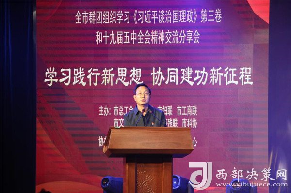 西部決策網(wǎng)訊 為深入貫徹習近平新時代中國特色社會主義思想,學習宣傳貫徹《習近平談治國理政》第三卷、黨的十九屆五中全會精神,加快群團協(xié)同化建設進程,11月5日,西寧市總工會牽頭召開市級群團組織“學習踐行新思想 協(xié)同建功新征程”為主題的學習《習近平談治國理政》第三卷和黨的十九屆五中全會精神交流分享會,市委常委、宣傳部部長、市總工會主席王霞出席會議并講話。全市各群團組織負責同志、勞模代表和干部職工群眾共300余人參加活動。
