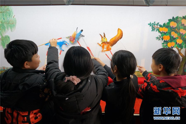 當(dāng)日,在河北省沙河市,當(dāng)?shù)仄び皯蛩嚾俗哌M(jìn)沙河市西油村小學(xué),為學(xué)生們展演皮影藝術(shù)、傳授技藝。今年以來,河北省沙河市積極開展“非遺進(jìn)校園”活動(dòng),組織沙河皮影戲、孔明鎖、孫氏太極拳等非遺項(xiàng)目進(jìn)校園活動(dòng)80多場(chǎng)。