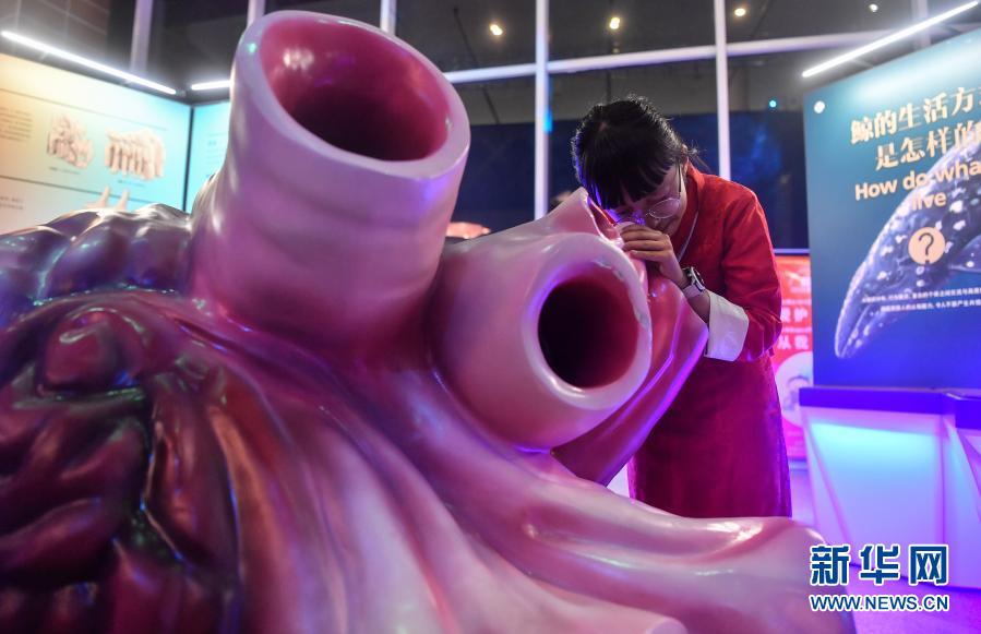 在西藏自治區(qū)自然科學博物館,一名拉薩市實驗小學的學生在《鯨奇世界》海洋主題巡展上觀看鯨魚心臟模型(10月30日攝)。來自上海科技館的海洋主題巡展《鯨奇世界》是2020年科技部“科普援藏”系列活動之一。新華社記者 晉美多吉 攝
