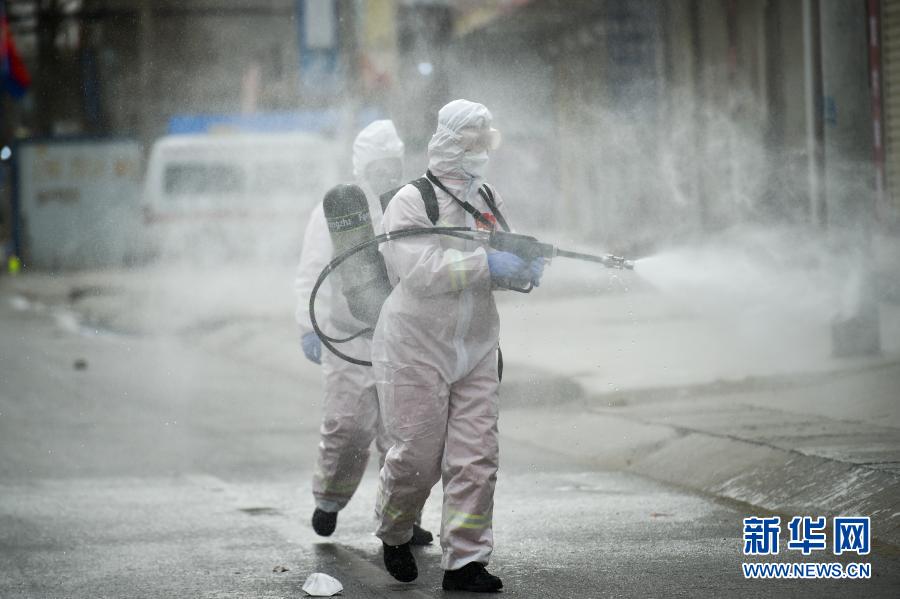 1月15日,在河北省石家莊市藁城區(qū)小果莊村,防疫工作人員在進(jìn)行消殺。新華社發(fā)(趙杰 攝)