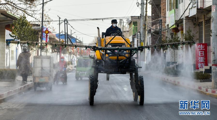 1月15日,在河北省石家莊市藁城區(qū)禪房村,防疫工作人員使用農(nóng)用噴霧機(jī)進(jìn)行消殺。新華社發(fā)(趙杰 攝)