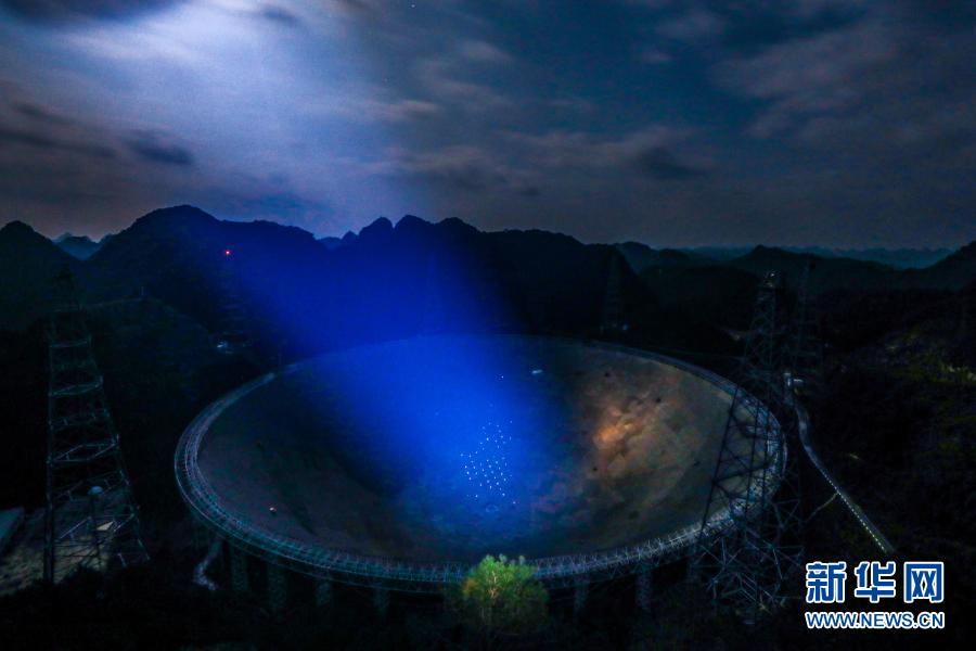 2020年1月8日,夜色中的“中國天眼”全景(檢修期間拍攝)。新華社記者歐東衢 攝