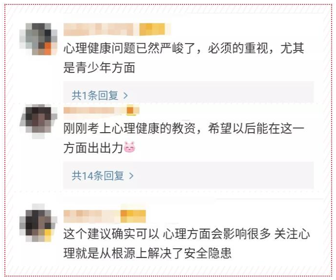 全國人大代表司富春建議,針對中小學校教師普及心理健康常識,實施教師心理健康教育資格認證制度,實行班主任和專、兼職心理健康教育教師持證上崗制度。加強對中小學生實施心理健康教育。
