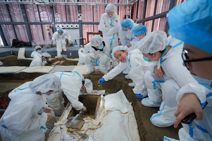 北大考古實(shí)力相當(dāng)“硬核”,是中國(guó)高校第一個(gè)考古學(xué)專業(yè),在全國(guó)排名第一。但許丹陽(yáng)和劉槃不同,他在報(bào)考考古專業(yè)的時(shí)候,完全是“稀里糊涂”的。“看著挺好玩的一個(gè)專業(yè),感覺(jué)會(huì)到處去游山玩水,就報(bào)上了。”結(jié)果發(fā)現(xiàn),考古與原來(lái)所想象的完全不一樣。考古是一項(xiàng)很?chē)?yán)肅的、專業(yè)性很強(qiáng)的事業(yè),需要掌握多方面的理論知識(shí),也需要很強(qiáng)的動(dòng)手操作能力??脊诺拇_很好玩,會(huì)因?yàn)榘l(fā)掘到一件獨(dú)特的文物而歡呼雀躍,會(huì)因?yàn)槁皆谶h(yuǎn)古的廢墟而沉浸其中,也會(huì)因?yàn)榻忾_(kāi)了一個(gè)小小的歷史謎題而興奮不已??脊乓矔?huì)有艱辛,尤其是下工地。有考古學(xué)人編了這樣的段子:“遠(yuǎn)看像逃難的,近看像撿破爛的,仔細(xì)一問(wèn),原來(lái)是考古勘探的”。雖是自嘲,卻也表明了田野考古的不易。好在好學(xué)的許丹陽(yáng)發(fā)現(xiàn),考古并不是一門(mén)孤立的學(xué)科,不但要掌握考古學(xué)本身的理論方法,而且需要跟很多學(xué)科進(jìn)行跨學(xué)科研究,因此說(shuō)它需要“上知天文下知地理”也不為過(guò)。后來(lái)許丹陽(yáng)越學(xué)越覺(jué)得有趣,也越來(lái)越深愛(ài)這份職業(yè)。許丹陽(yáng)“入坑”已經(jīng)好幾個(gè)月了,從去年10月9日4號(hào)坑正式開(kāi)啟發(fā)掘,到今年1月16日,才確認(rèn)找到了一段象牙。在他看來(lái),每一勺土,都是承載著歷史痕跡的,每一個(gè)時(shí)刻,都是驚心動(dòng)魄、跌宕起伏的,因?yàn)橐徊恍⌒?,就?huì)見(jiàn)證到古老文物的重見(jiàn)天日。高強(qiáng)度的工作之余,許丹陽(yáng)目前下班后最想做的事情就是睡覺(jué),從頭天晚上一覺(jué)睡到第二天中午,給自己充上滿格電再繼續(xù)投入到新一輪的“挖土”中。