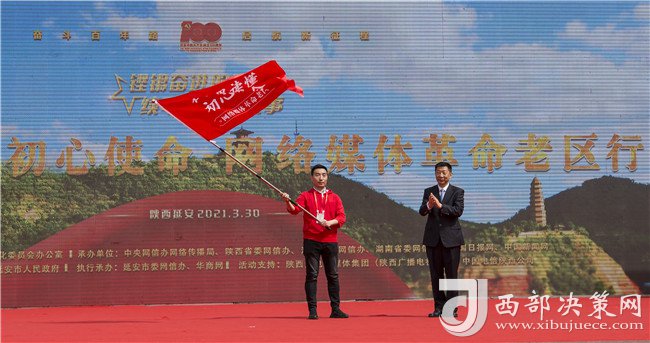 主會場活動結(jié)束后,陜西分會場“在這里讀懂初心使命——網(wǎng)絡(luò)媒體革命老區(qū)行”網(wǎng)絡(luò)主題采訪活動在延安寶塔山游客廣場正式啟動。趙剛在分會場啟動儀式上講話并向采訪團(tuán)授旗。陜西省委網(wǎng)信辦主任鮑永能主持啟動儀式。中央網(wǎng)信辦網(wǎng)絡(luò)傳播局副局長邵波濤,陜西省委網(wǎng)信辦副主任王利參加啟動儀式。延安市委副書記、政法委書記嚴(yán)漢平在啟動儀式上致辭。媒體團(tuán)代表中國新聞網(wǎng)負(fù)責(zé)人吳慶才作表態(tài)發(fā)言。