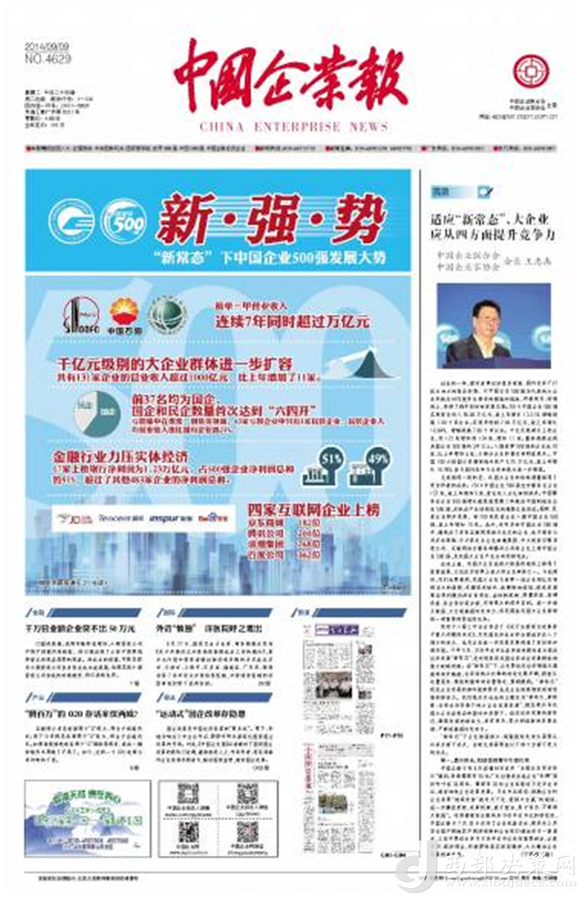《中國企業(yè)報》是由中國企業(yè)聯(lián)合會、中國企業(yè)家協(xié)會主管主辦,是中國唯一以企業(yè)和企業(yè)家為報道核心的中央級媒體?!吨袊髽I(yè)報》是一張專為中國企業(yè)創(chuàng)辦的報紙。1988年1月4日,由國家經(jīng)委主辦,中國企業(yè)管理協(xié)會承辦的《中國企業(yè)報》正式創(chuàng)刊。陳云同志為報紙題寫了報頭,鄧力群任報社名譽(yù)顧問,袁寶華任報社名譽(yù)社長。從1988年創(chuàng)辦至今,秉承“面向企業(yè),為企業(yè)服務(wù)”的辦報宗旨,親歷和記錄著中國企業(yè)的改革進(jìn)程,同時伴隨著中國企業(yè)的發(fā)展壯大而不斷成長。經(jīng)過20多年的實踐探索,在報道企業(yè)新聞、推動企業(yè)改革、維護(hù)企業(yè)權(quán)益、促進(jìn)企業(yè)發(fā)展等方面,逐步形成了自身的風(fēng)格和特色,專業(yè)性、權(quán)威性日益得到了企業(yè)界和新聞界的認(rèn)同。