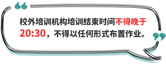 四、防止學(xué)業(yè)過重擠占睡眠時間。中小學(xué)校要提升課堂教學(xué)實效,加強(qiáng)作業(yè)統(tǒng)籌管理,嚴(yán)格按照有關(guān)規(guī)定要求,合理調(diào)控學(xué)生書面作業(yè)總量,指導(dǎo)學(xué)生充分利用自習(xí)課或課后服務(wù)時間,使小學(xué)生在校內(nèi)基本完成書面作業(yè)、中學(xué)生在校內(nèi)完成大部分書面作業(yè),避免學(xué)生回家后作業(yè)時間過長,擠占正常睡眠時間。校外培訓(xùn)機(jī)構(gòu)培訓(xùn)結(jié)束時間不得晚于20:30,不得以課前預(yù)習(xí)、課后鞏固、作業(yè)練習(xí)、微信群打卡等任何形式布置作業(yè)。