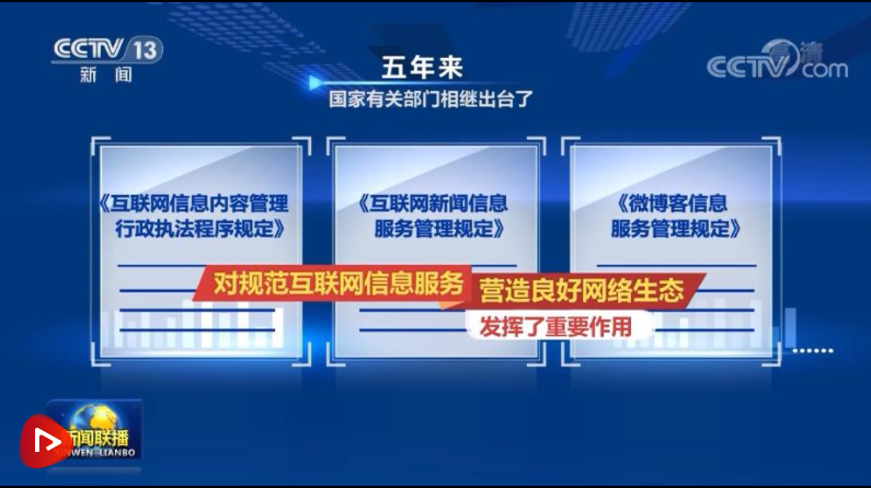 五年來,國家有關(guān)部門相繼出臺了《互聯(lián)網(wǎng)信息內(nèi)容管理行政執(zhí)法程序規(guī)定》《互聯(lián)網(wǎng)新聞信息服務(wù)管理規(guī)定》《微博客信息服務(wù)管理規(guī)定》等一系列法規(guī),對規(guī)范互聯(lián)網(wǎng)信息服務(wù)、營造良好網(wǎng)絡(luò)生態(tài)發(fā)揮了重要作用,正能量高揚,網(wǎng)絡(luò)環(huán)境日漸清朗。