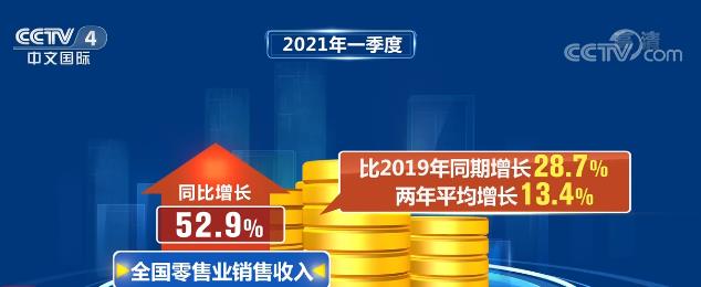 增值稅發(fā)票數(shù)據(jù)顯示,2021年一季度,全國(guó)零售業(yè)銷售收入同比增長(zhǎng)52.9%,比2019年同期增長(zhǎng)28.7%,兩年平均增長(zhǎng)13.4%。其中,食品飲料、紡織服裝零售收入同比增長(zhǎng)都超過(guò)50%,兩年平均增長(zhǎng)在15%以上。