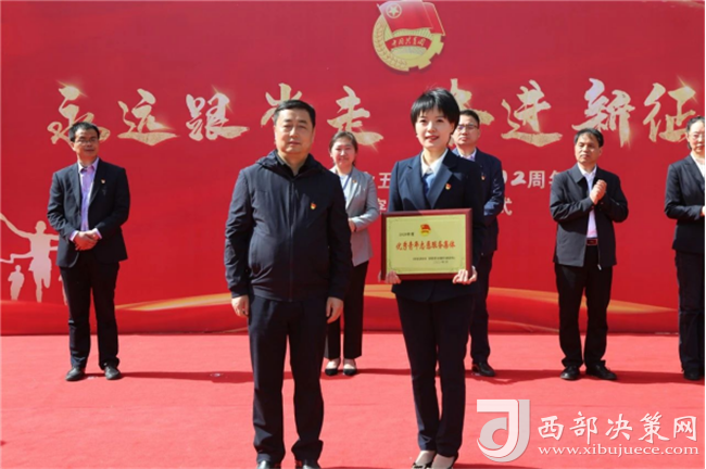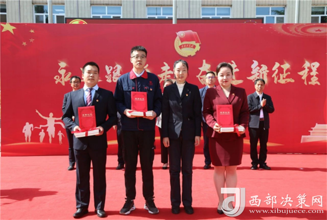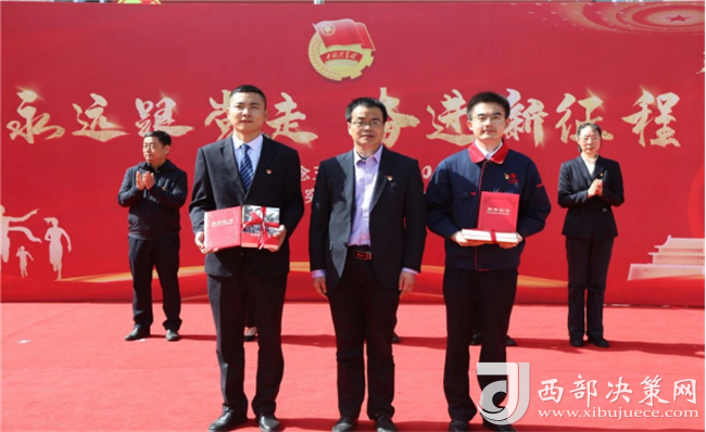 集團公司副總裁楊會軍為寶雞市青年突擊手牛力,優(yōu)秀共青團干部趙騰頒獎