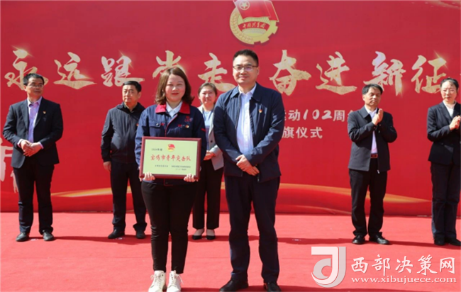 西部決策網訊(韓宗憲)4月29日,西鳳集團公司團委在辦公樓前廣場舉行了“永遠跟黨走 奮進新征程”紀念五四運動102周年暨青年突擊隊授旗儀式。共青團寶雞市委書記高婷,西鳳集團公司黨委副書記、總裁楊宏亮,黨委委員、股份公司副董事長、總經理賈智勇,黨委副書記郭拴新,黨委委員、副總裁楊會軍,紀委書記、監(jiān)察專員帖樹紅,以及公司相關職能部門負責人,共青團工作支持者,共青團干部和團員青年代表共200多人參加了儀式,集團公司工會主席陳軍紅主持儀式。