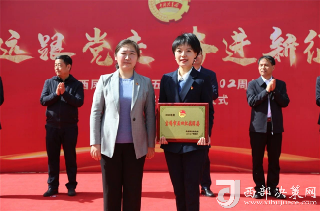 共青團寶雞市委書記高婷為2020年度五四紅旗團委代表朱小倩頒獎