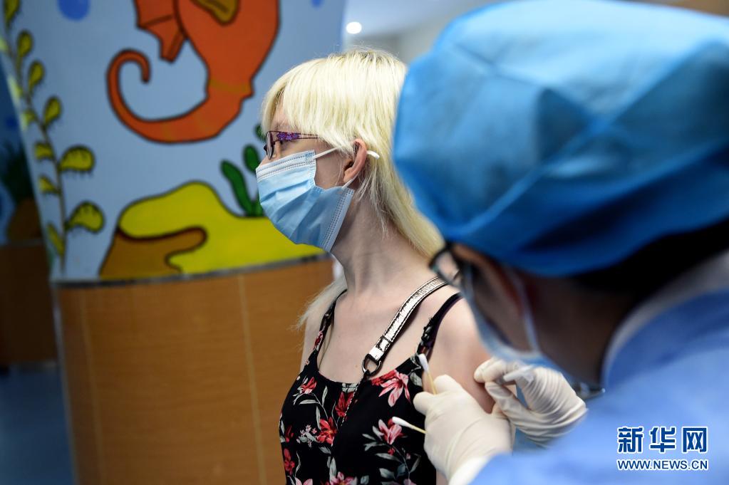 2021年5月12日,在合肥市一處新冠疫苗接種點(diǎn),醫(yī)務(wù)人員為外籍人士接種疫苗。新華社記者 黃博涵 攝