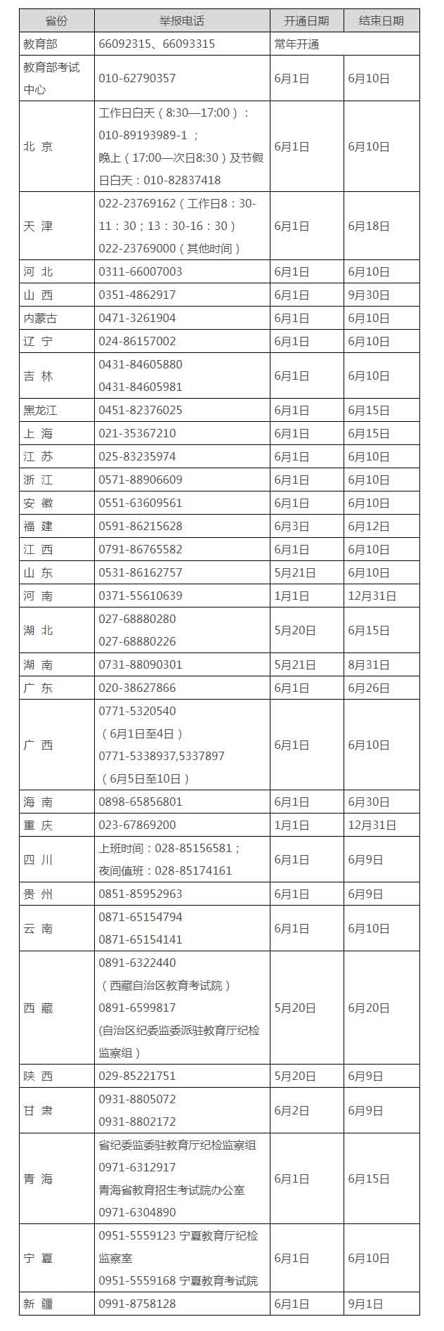 近日,教育部統(tǒng)一公布了教育部以及全國31個?。▍^(qū)、市)教育行政部門和招生考試機構(gòu)2021年的高考舉報電話,歡迎廣大考生、家長及社會各界人士及時舉報反映涉及2021年高考的問題線索。教育部及各省(區(qū)、市)將會同有關(guān)部門根據(jù)舉報線索第一時間核查處理,堅決維護(hù)高考公平公正。