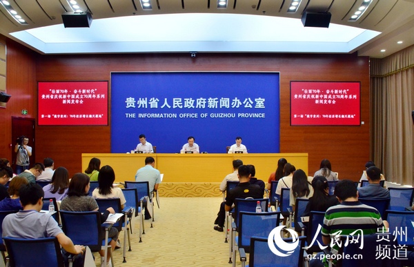 6月5日,“壯麗70年·奮斗新時(shí)代”貴州省慶祝新中國成立70周年系列首場新聞發(fā)布會(huì)在貴陽召開。新中國成立70年,貴州經(jīng)濟(jì)增長速度前所未有,全省生產(chǎn)總值從1949年的6.23億元到2018年的14806.45億元,人均地區(qū)生產(chǎn)總值由44元增加到41244元,貧困人口由1840萬減少至155萬……社會(huì)巨變,數(shù)字可見。