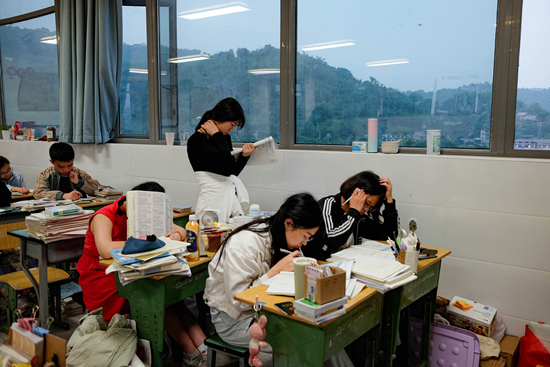 我的班級叫“線下”復(fù)讀班,大部分是去年高考沒有達(dá)到本科線的學(xué)生。比起考取名校,他們的復(fù)讀目標(biāo)更加現(xiàn)實(shí)。張偉去年高考成績比預(yù)期低了60分,他不服氣,選擇再考一年證明自己;陳鵬飛則想今年?duì)幦∧軌蚩忌媳究啤?/p>