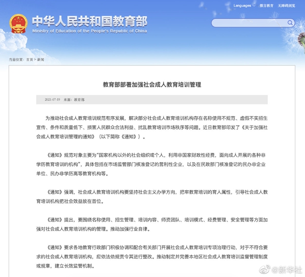 記者19日從教育部了解到,為推動社會成人教育培訓(xùn)規(guī)范有序發(fā)展,解決部分社會成人教育培訓(xùn)機構(gòu)存在名稱使用不規(guī)范、虛假不實招生宣傳、條件和質(zhì)量低下、損害人民群眾合法利益、擾亂教育培訓(xùn)市場秩序等問題,教育部近日印發(fā)《關(guān)于加強社會成人教育培訓(xùn)管理的通知》。通知強調(diào),要圍繞名稱使用、招生管理、培訓(xùn)內(nèi)容、師資團隊、培訓(xùn)模式、經(jīng)費管理、安全管理等方面加強對社會成人教育培訓(xùn)機構(gòu)的管理。通知要求各地教育行政部門積極協(xié)調(diào)和配合有關(guān)部門開展社會成人教育培訓(xùn)專項治理行動。(記者胡浩)