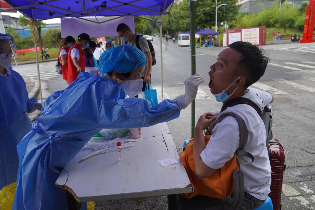 8月24日,貴州醫(yī)科大學(xué)新生報到注冊時接受核酸檢測。新華社發(fā)(李菡逸 攝)