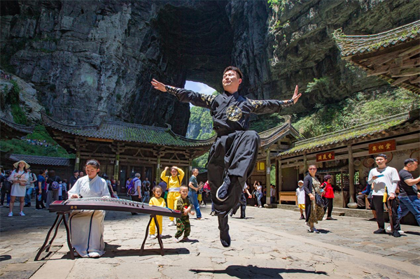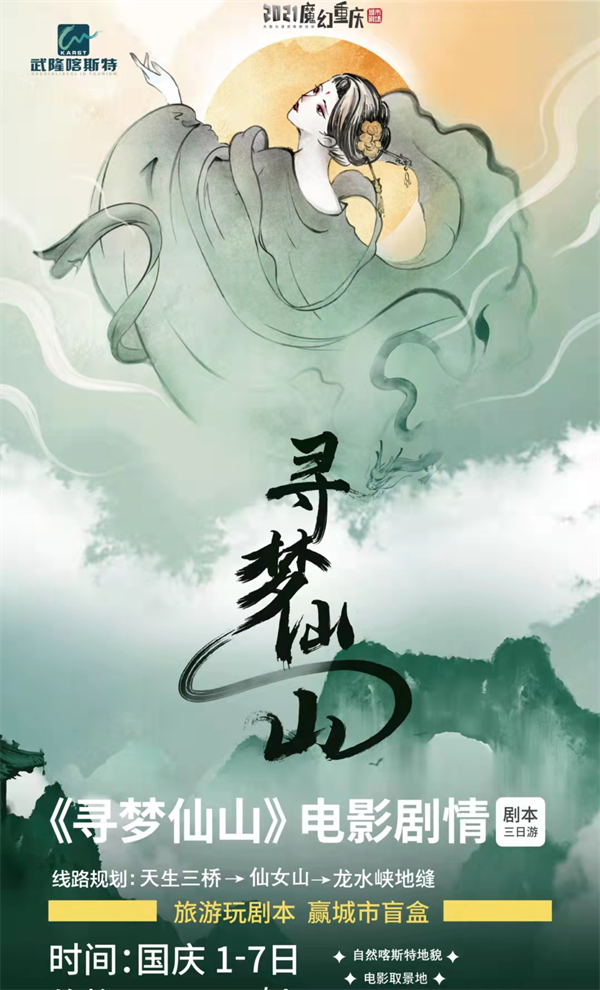 作為國(guó)內(nèi)熱門的影視取景地,武隆憑借獨(dú)特的自然風(fēng)光,吸引了包括《滿城盡帶黃金甲》、《變形金剛4》、《爸爸去哪兒2》、《三生三世十里桃花》、《我們十七歲》等眾多影視及綜藝節(jié)目到此拍攝取景,現(xiàn)已成為重慶旅游的文化名片。鬼斧神工的自然景觀,加上濃郁的影視文化氛圍,讓《尋夢(mèng)仙山》沉浸式劇本殺更新奇和神秘。國(guó)慶出發(fā)去武隆玩“劇本殺”,讓我們拭目以待吧!