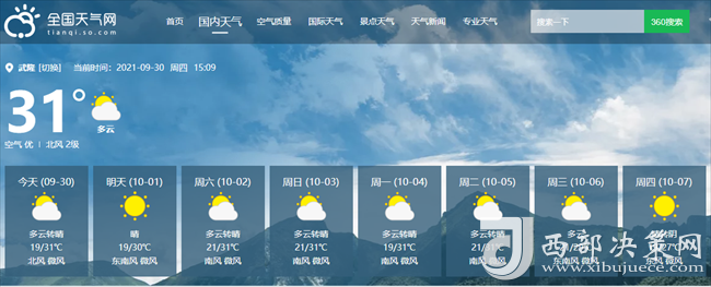西部決策網(wǎng)訊(記者張永軍)小編從全國(guó)天氣網(wǎng)獲悉,今年“十一”期間,重慶武隆均為晴好天氣,氣溫在19°到31°。整體看來(lái),天公作美,非常適合出游。