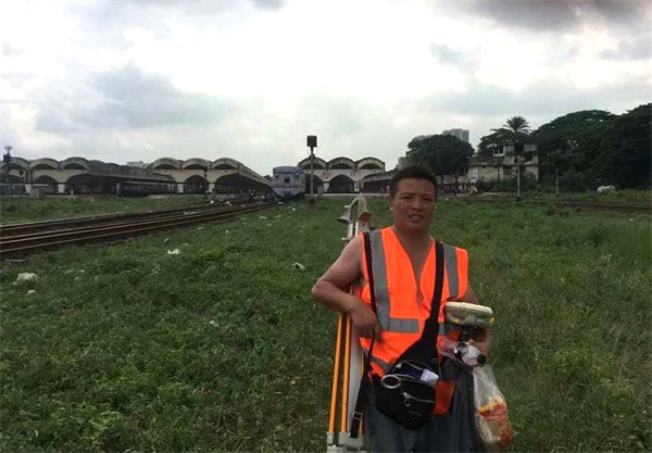 在中鐵一局三公司孟加拉帕德瑪大橋鐵路連接線項目,唐飛帶隊進行前期控制網(wǎng)復測,因前期各項準備工作還未到位,來到這個陌生的國度,唐飛面臨的是一個語言不通、無后勤保障、自然條件惡劣的環(huán)境。沒有翻譯,唐飛就用翻譯軟件翻譯生僻的英語和設計、監(jiān)理溝通;沒有合適的工人,唐飛和隊員們就自己挖坑、抬樁子;沒有食堂,他們連續(xù)吃了一個月的方便面午餐。孟加拉位于熱帶地區(qū),雨水多且來勢迅猛,雨來時,唐飛他們就在雨中堅持放線,雨太大實在無法觀測時,他們就站在雨中打著傘,用塑料袋保護著儀器,直到雨停后繼續(xù)觀測。