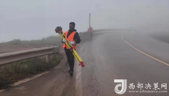 在進行二等水準測量時,進出口聯(lián)測距離為50千米,不僅要面對國道上龐大的車流量,還要面對盤山路的大坡度、大霧的低能見度、突然來襲的雨雪天氣以及雨雪過后的低溫。二等水準的測量方式是步行,因為是高原,所以體力消耗特別大,山里又沒有吃飯的地方,大家只能靠隨身攜帶的面包、開水保證體能。然而即使面對如此困難的環(huán)境,大家依然不忘初心,按時完成了復(fù)測任務(wù)。