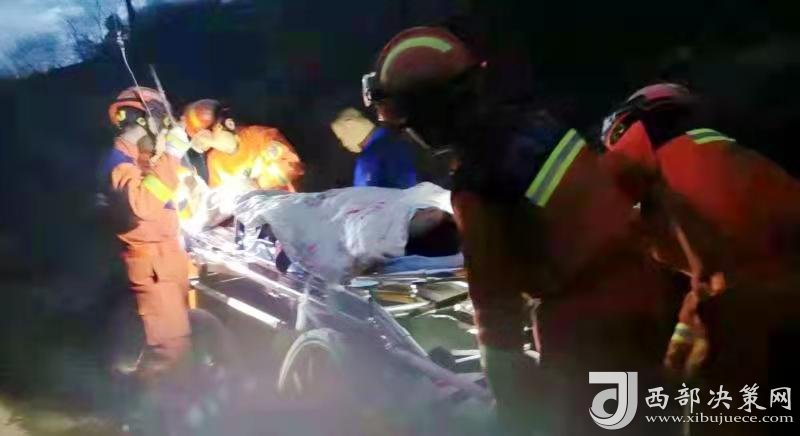 凌晨六點,山里依舊是漆黑一片,山風(fēng)冷颼颼,醫(yī)護人員和消防救援人員輪換著抬著擔(dān)架在高低不平、狹窄崎嶇的山路上深一腳淺一腳,舉步維艱地前行,累的氣喘吁吁。雜草掩蓋了道路,讓人分不清是路還是溝,原本20分鐘的路程,一行人卻走了1小時。行進的途中,患者的每一聲呻吟都牽動著大家的心。早上7點20分,在大家的共同努力下,安全將患者送到120急救車上。