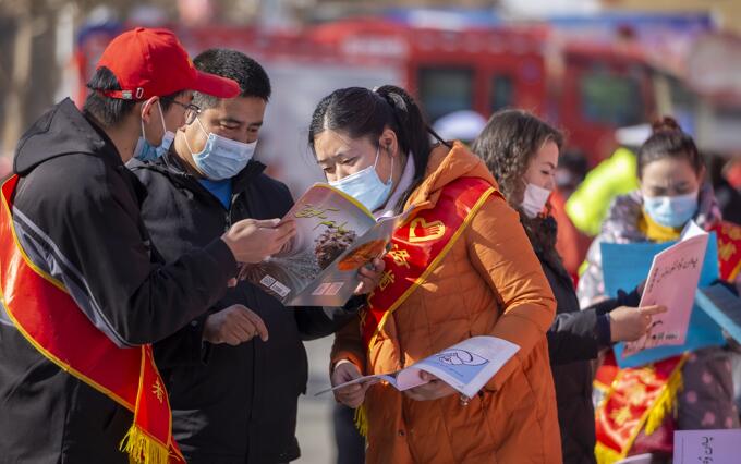 2021年12月4日上午,洛浦縣科技局工作人員在該縣艾德萊斯廣場,正在向當?shù)鼐用襁M行講解“科普知識”。買買提艾力·艾尼瓦爾攝